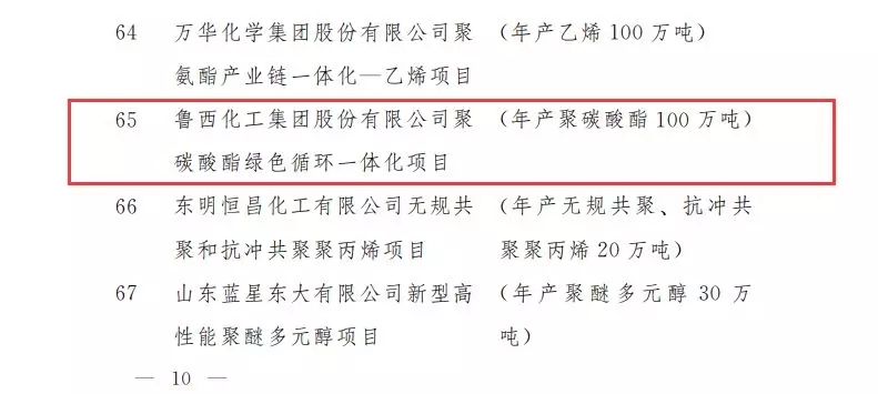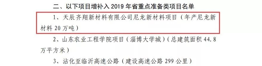 ????????近日,山東省發(fā)改委公布了關(guān)于調(diào)整2019年省重點(diǎn)項(xiàng)目調(diào)整的通知,主要涉及項(xiàng)目進(jìn)出的調(diào)整,其中增補(bǔ)了7月25日公布的天辰齊翔100萬(wàn)噸尼龍66新材料項(xiàng)目入選,而魯西化工100萬(wàn)噸聚碳酸酯PC項(xiàng)目退出。早在7月23日,山東省發(fā)改委發(fā)布通知:關(guān)于2019年省重點(diǎn)項(xiàng)目中期調(diào)整的通知。