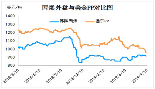 ????????由丙烯外盤及美金PP市場價格對比發(fā)現(xiàn),美金PP因前期高價影響國內(nèi)成交力度,且內(nèi)外盤價差高位下,加劇美金PP市場成交壓力。進入九月市場美金PP市場整體報盤受外商低價報盤影響,美金外盤及國內(nèi)價差逐步收窄,且部分低價拉絲低于國內(nèi)PP低端價,促進美金PP市場部分成交。就目前國內(nèi)檢修集中利好影響,但需求跟進有限拖累,PP內(nèi)外盤價差后市有進一步收窄可能。