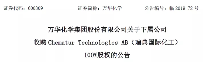 穩(wěn)坐全球MDI龍頭!萬(wàn)華化學(xué)收購(gòu)瑞典國(guó)際化工100%股權(quán)