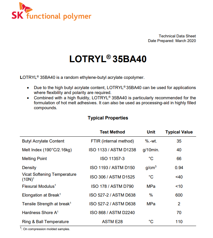 - 阿科瑪增韌劑相容劑EBA Lotryl 35BA40 物性表, 阿科瑪增韌劑相容劑EBA Lotryl 35BA40 產(chǎn)品參數(shù),阿科瑪增韌劑相容劑EBA Lotryl 35BA40 性能表,阿科瑪增韌劑相容劑EBA Lotryl 35BA40 出廠報(bào)告, MSDS,, 物質(zhì)安全資料表, UL黃卡,{ SGS報(bào)告, RoHS, 食品級(jí)認(rèn)證, NSF飲用水標(biāo)準(zhǔn), 產(chǎn)品資料, 產(chǎn)品性能, 出廠報(bào)告, 原廠原包, 代理商, 熱變形溫度, 熔指數(shù), 流動(dòng)系數(shù), 抗沖擊性能、沖擊強(qiáng)度, 低溫韌性、低溫抗沖擊性能, 熔體流動(dòng)系數(shù)、熔體流動(dòng)速率, 加工工藝、加工參數(shù)、加工溫度, 歐盟RoHS 德國(guó)FDA 美國(guó)FDA 日本FDA
