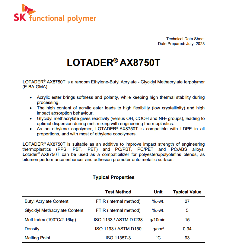 - EMA 法國(guó)阿科瑪 AX8750 塑料改性劑 粘結(jié)樹(shù)脂 PC加纖料改性兼容劑 物性表, EMA 法國(guó)阿科瑪 AX8750 塑料改性劑 粘結(jié)樹(shù)脂 PC加纖料改性兼容劑 產(chǎn)品參數(shù),EMA 法國(guó)阿科瑪 AX8750 塑料改性劑 粘結(jié)樹(shù)脂 PC加纖料改性兼容劑 性能表,EMA 法國(guó)阿科瑪 AX8750 塑料改性劑 粘結(jié)樹(shù)脂 PC加纖料改性兼容劑 出廠(chǎng)報(bào)告, MSDS,, 物質(zhì)安全資料表, UL黃卡,{ SGS報(bào)告, RoHS, 食品級(jí)認(rèn)證, NSF飲用水標(biāo)準(zhǔn), 產(chǎn)品資料, 產(chǎn)品性能, 出廠(chǎng)報(bào)告, 原廠(chǎng)原包, 代理商, 熱變形溫度, 熔指數(shù), 流動(dòng)系數(shù), 抗沖擊性能、沖擊強(qiáng)度, 低溫韌性、低溫抗沖擊性能, 熔體流動(dòng)系數(shù)、熔體流動(dòng)速率, 加工工藝、加工參數(shù)、加工溫度, 歐盟RoHS 德國(guó)FDA 美國(guó)FDA 日本FDA