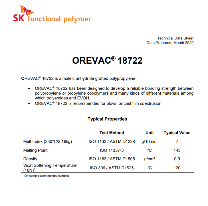 - PP馬來酸酐改性聚丙烯 法國阿科瑪 Orevac 18722 共擠薄膜粘接性 物性表, PP馬來酸酐改性聚丙烯 法國阿科瑪 Orevac 18722 共擠薄膜粘接性 產(chǎn)品參數(shù),PP馬來酸酐改性聚丙烯 法國阿科瑪 Orevac 18722 共擠薄膜粘接性 性能表,PP馬來酸酐改性聚丙烯 法國阿科瑪 Orevac 18722 共擠薄膜粘接性 出廠報(bào)告, MSDS,, 物質(zhì)安全資料表, UL黃卡,{ SGS報(bào)告, RoHS, 食品級認(rèn)證, NSF飲用水標(biāo)準(zhǔn), 產(chǎn)品資料, 產(chǎn)品性能, 出廠報(bào)告, 原廠原包, 代理商, 熱變形溫度, 熔指數(shù), 流動系數(shù), 抗沖擊性能、沖擊強(qiáng)度, 低溫韌性、低溫抗沖擊性能, 熔體流動系數(shù)、熔體流動速率, 加工工藝、加工參數(shù)、加工溫度, 歐盟RoHS 德國FDA 美國FDA 日本FDA