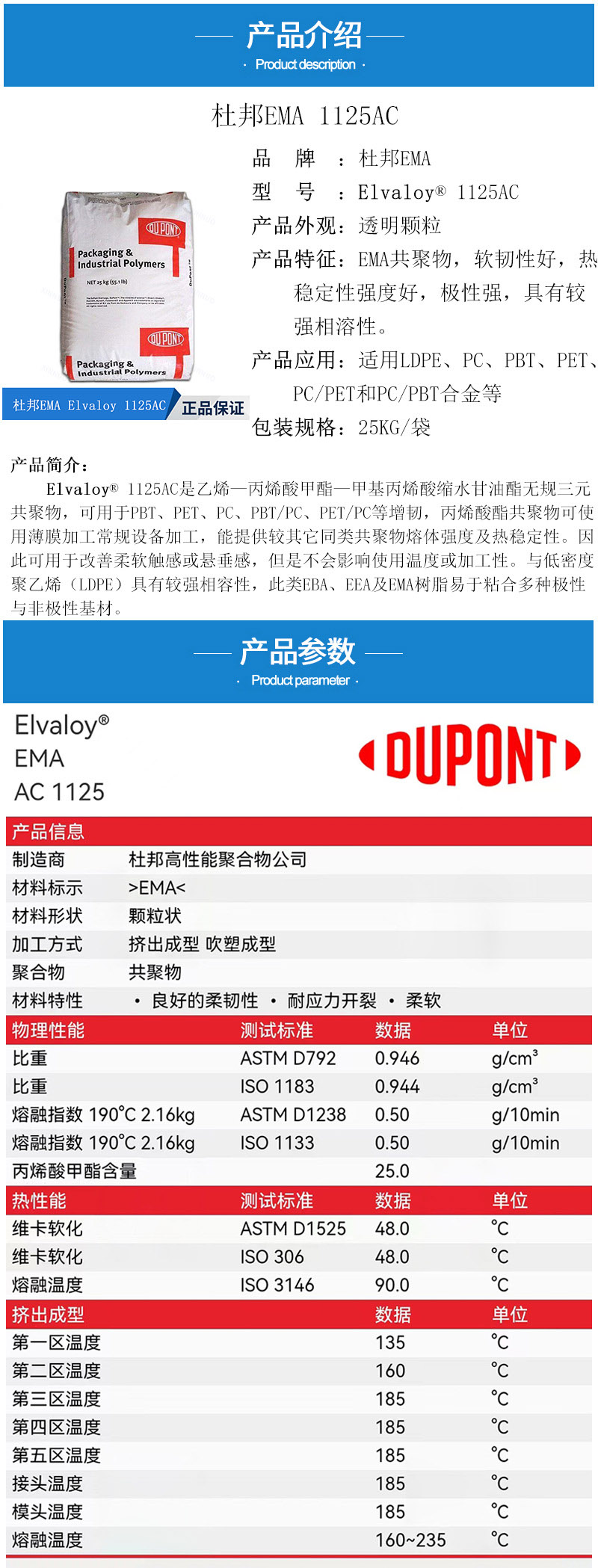- EMA 杜邦 1125 相溶劑 PC/PET PBT增韌劑 LDPE薄膜 Elvaloy 物性表, EMA 杜邦 1125 相溶劑 PC/PET PBT增韌劑 LDPE薄膜 Elvaloy 產(chǎn)品參數(shù),EMA 杜邦 1125 相溶劑 PC/PET PBT增韌劑 LDPE薄膜 Elvaloy 性能表,EMA 杜邦 1125 相溶劑 PC/PET PBT增韌劑 LDPE薄膜 Elvaloy 出廠報告, MSDS,, 物質(zhì)安全資料表, UL黃卡,{ SGS報告, RoHS, 食品級認證, NSF飲用水標準, 產(chǎn)品資料, 產(chǎn)品性能, 出廠報告, 原廠原包, 代理商, 熱變形溫度, 熔指數(shù), 流動系數(shù), 抗沖擊性能、沖擊強度, 低溫韌性、低溫抗沖擊性能, 熔體流動系數(shù)、熔體流動速率, 加工工藝、加工參數(shù)、加工溫度, 歐盟RoHS 德國FDA 美國FDA 日本FDA