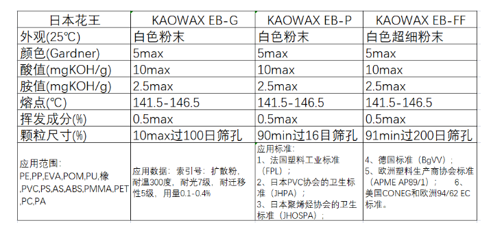 名稱:日本花王分散劑EB-FF商品描述:日本花王KAOWAX EB是一類蠟狀的酰胺,其具有高的熔點,并在熔融狀態(tài)時保持低粘...