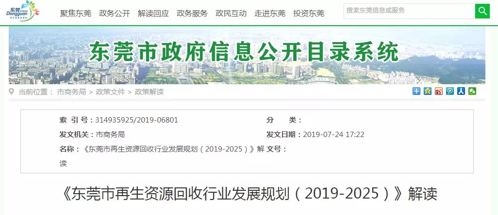 ????????7月24日,東莞市商務(wù)局對《東莞市再生資源回收行業(yè)發(fā)展規(guī)劃(2019-2025)》進行解讀,進一步規(guī)范再生資源回收行業(yè)發(fā)展
