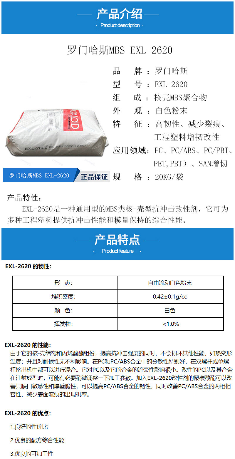 - MBS美國(guó)羅門哈斯2620 塑料增韌劑 ABS增韌 PS抗沖擊改性 mbs2620 物性表, MBS美國(guó)羅門哈斯2620 塑料增韌劑 ABS增韌 PS抗沖擊改性 mbs2620 產(chǎn)品參數(shù),MBS美國(guó)羅門哈斯2620 塑料增韌劑 ABS增韌 PS抗沖擊改性 mbs2620 性能表,MBS美國(guó)羅門哈斯2620 塑料增韌劑 ABS增韌 PS抗沖擊改性 mbs2620 出廠報(bào)告, MSDS,, 物質(zhì)安全資料表, UL黃卡,{ SGS報(bào)告, RoHS, 食品級(jí)認(rèn)證, NSF飲用水標(biāo)準(zhǔn), 產(chǎn)品資料, 產(chǎn)品性能, 出廠報(bào)告, 原廠原包, 代理商, 熱變形溫度, 熔指數(shù), 流動(dòng)系數(shù), 抗沖擊性能、沖擊強(qiáng)度, 低溫韌性、低溫抗沖擊性能, 熔體流動(dòng)系數(shù)、熔體流動(dòng)速率, 加工工藝、加工參數(shù)、加工溫度, 歐盟RoHS 德國(guó)FDA 美國(guó)FDA 日本FDA