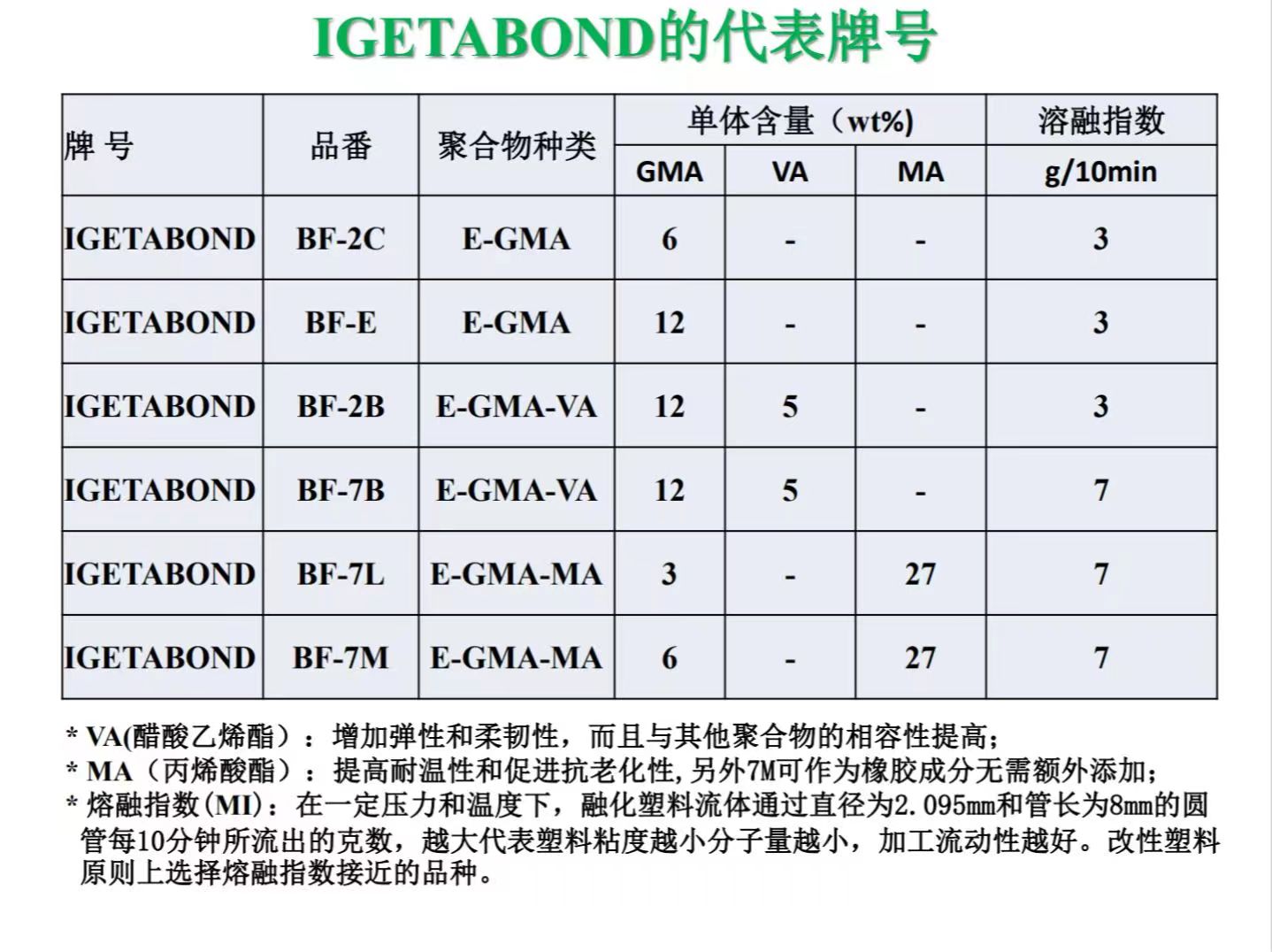 IGETABOND系列三元GMA共聚產(chǎn)品規(guī)格表