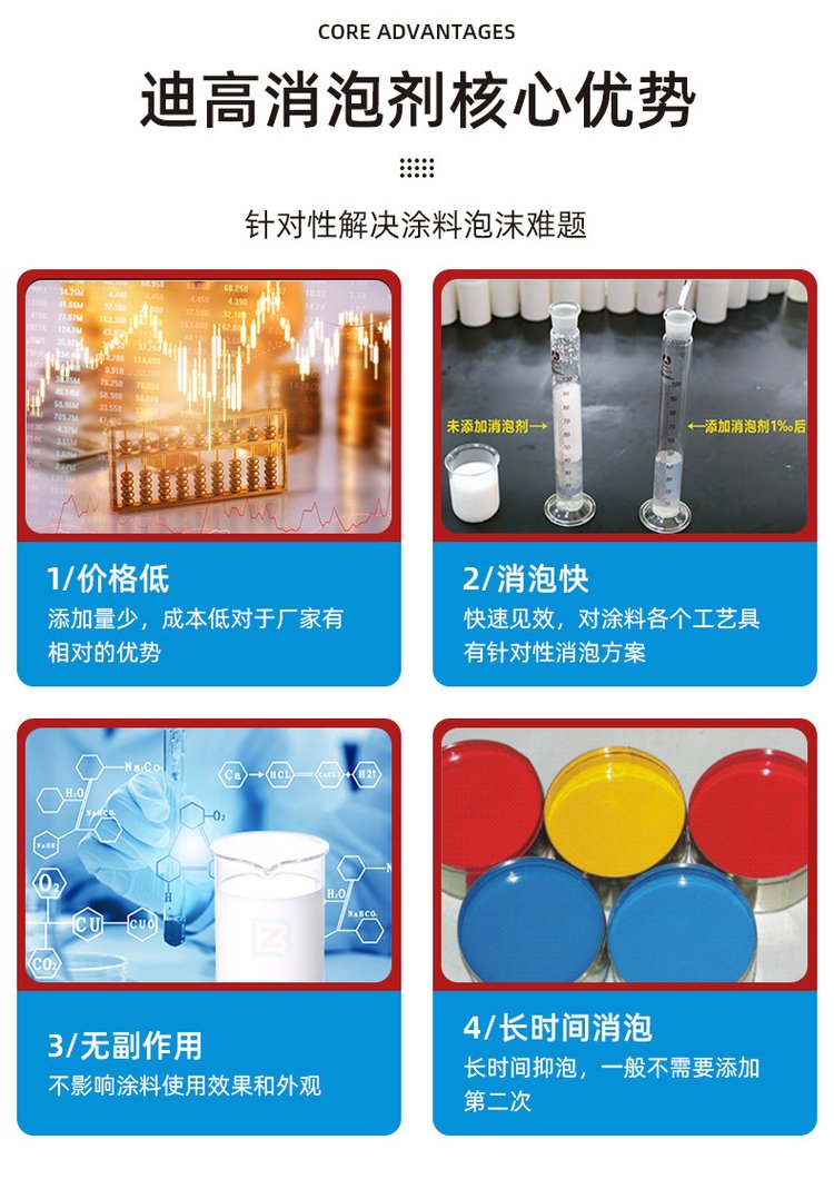 迪高Foamex 810消泡劑用水性配方的消泡劑濃縮液,適用于木器家具涂料、工業(yè)涂料、柔印凹印油墨、汽車漆、噴墨墨水、建筑涂料、鑲木地板漆、顏料濃縮漿。在研磨階段消泡效果優(yōu)異,非常好的相容性,高效能,特別適用于純丙乳液。